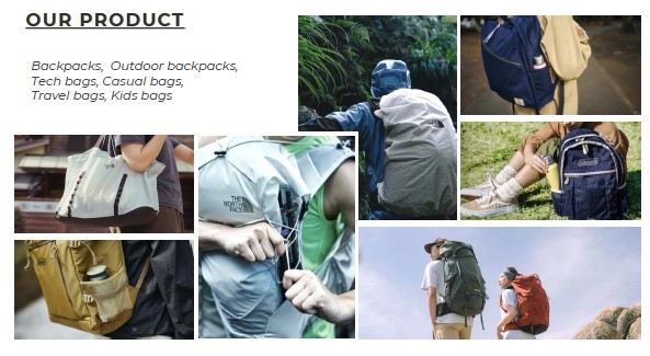 | (주)두웰플러스는 베트남 현지 생산 기지를 통해 고품질 아웃도어 가방을 제조하는 전문 기업입니다. 글로벌 품질 관리 시스템을 통해 엄격한 품질 기준을 준수하며, 일본 시장에서 높은 신뢰도를 바탕으로 안정적인 수출 실적을 보유하고 있습니다. 현지 생산을 통한 원가 경쟁력과 철저한 품질 관리로 글로벌 시장에서 성장하고 있으며, 지속적인 제품 혁신과 디자인 개발을 통해 아웃도어 가방 시장의 선도적 위치를 확보하고 있습니다. **주요 제조 브랜드 : THE NORTH FACE, COLEMAN, DANTON, YONEX 등 |